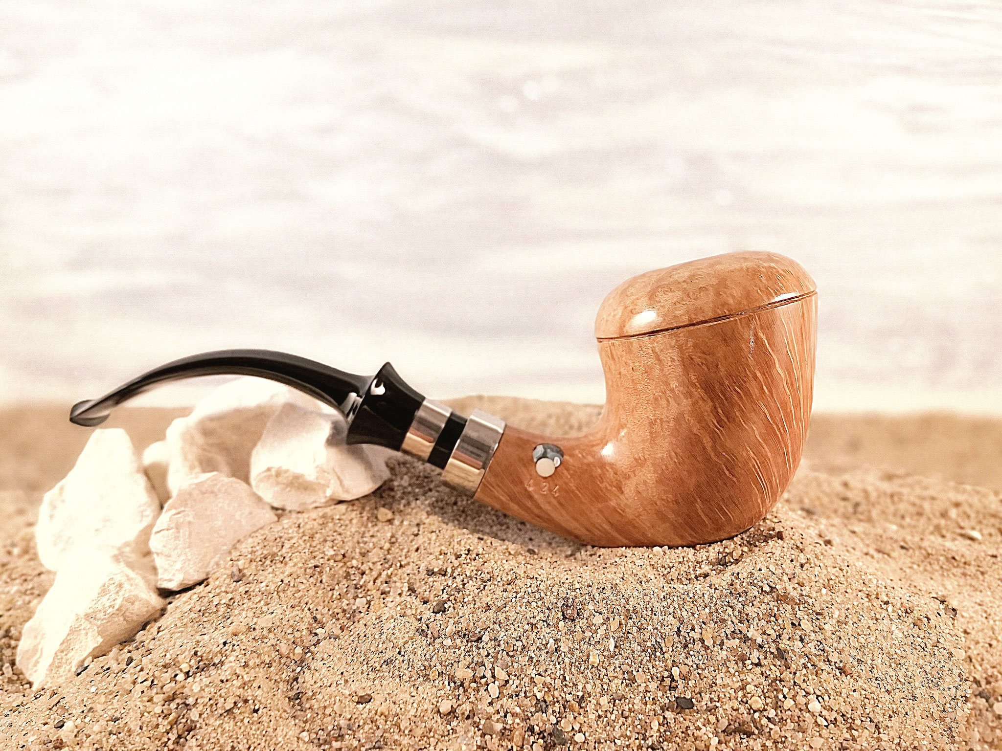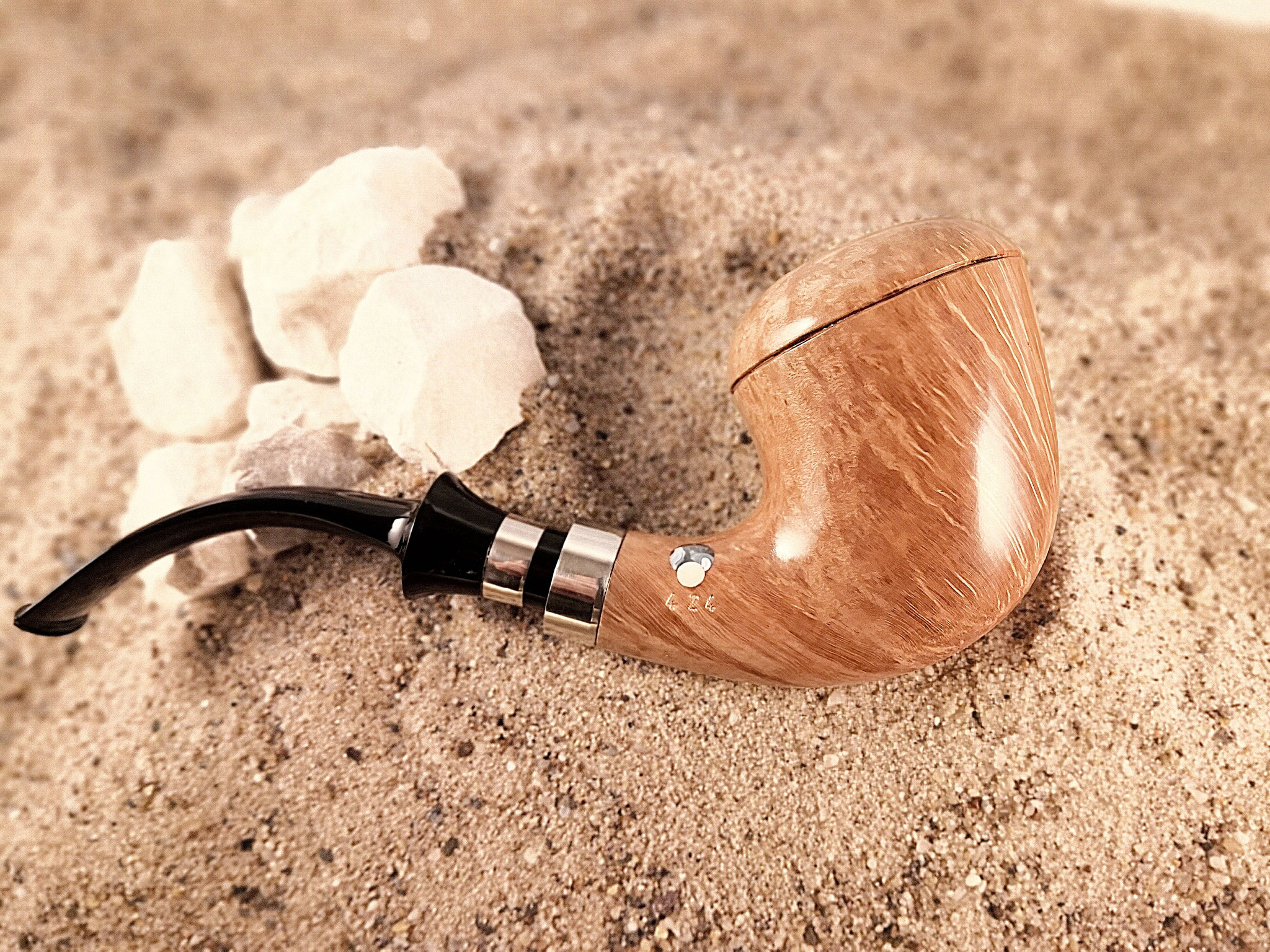 Bemerkung: 9mm Filter-Pfeife mit sehr dünnem Holm. Der Holm ist durch ein 925er Silberband verstärkt.