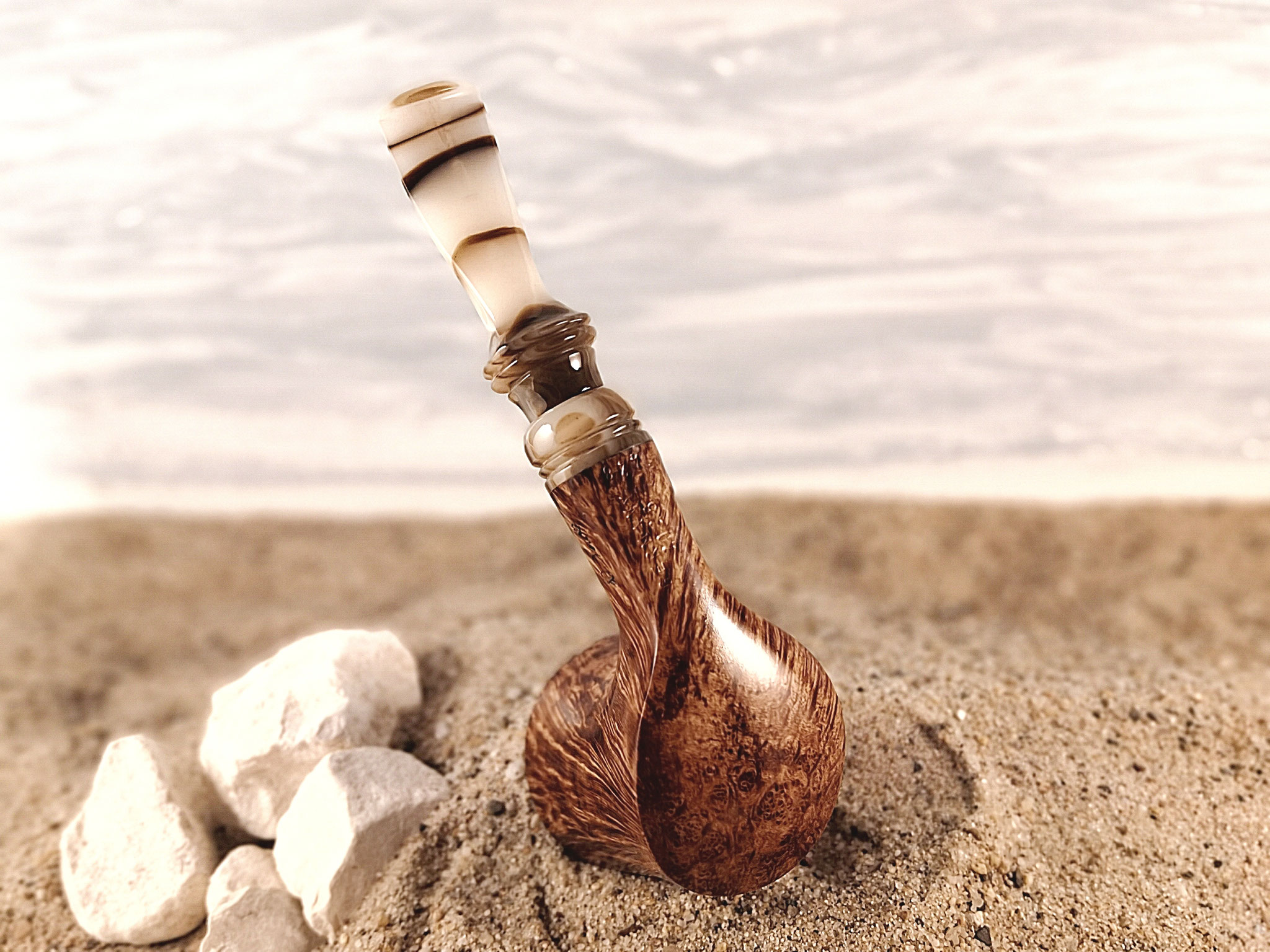 Mundstück / stem: Acryl, handcut. Zarte Marmorierung.