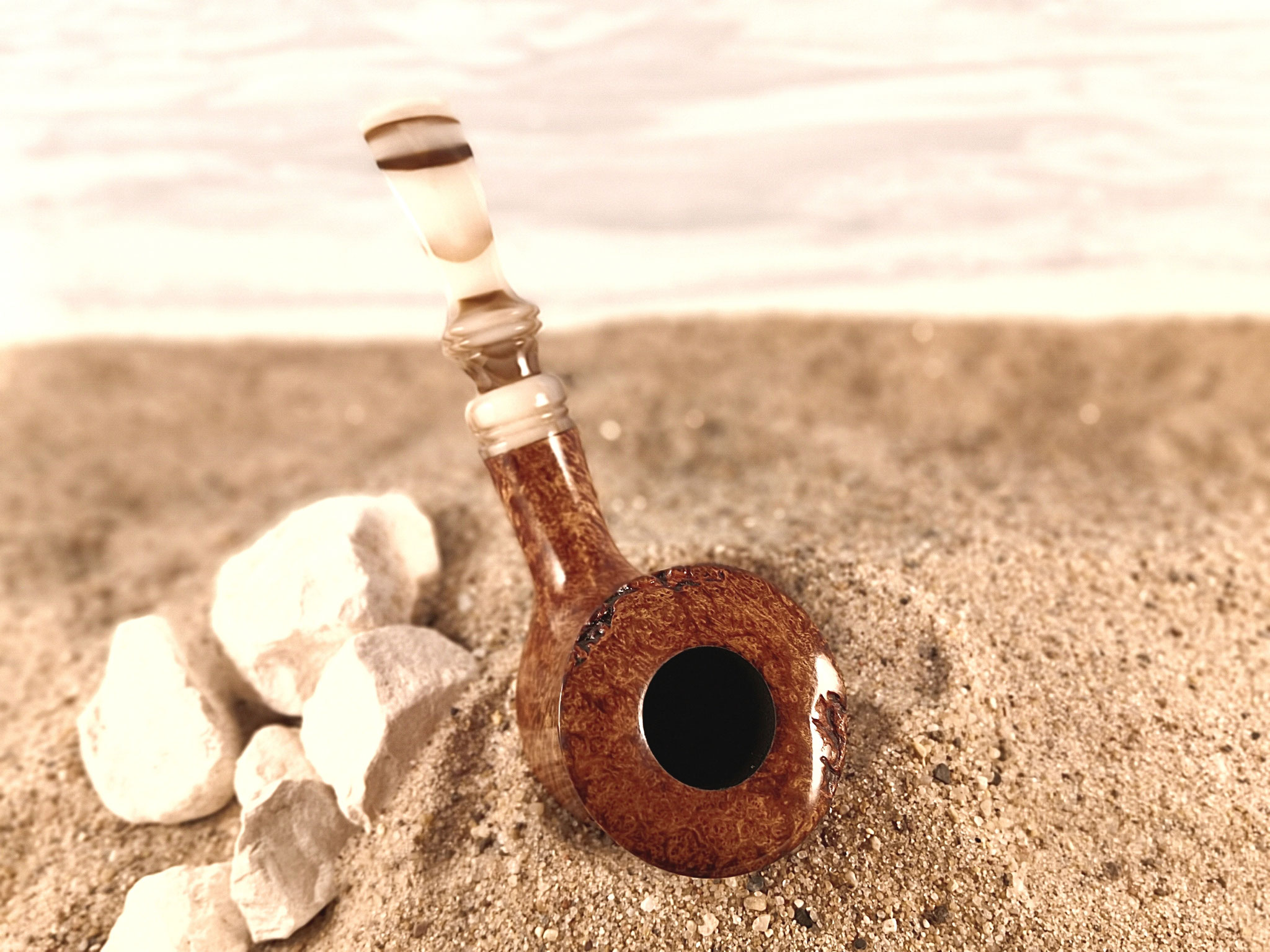 Mundstück / stem: Acryl, bernsteinfarben. Handcut.