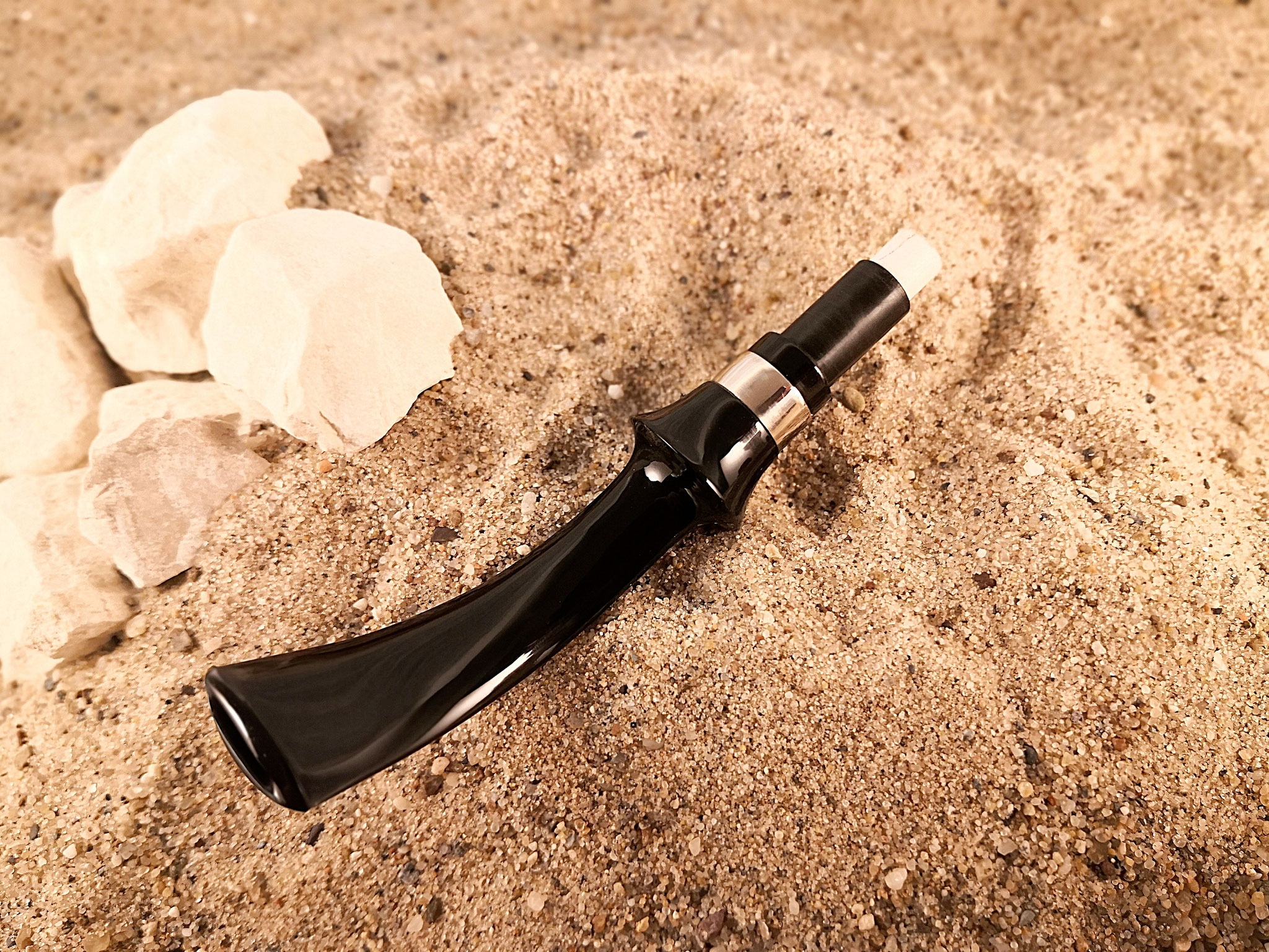 Mundstück / stem: Acryl - bernsteinfarben, handcut.